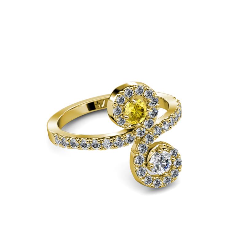 Yellow Sapphire and Diamond 2 Stone with Side Diamonds Bypass Engagement Ring 0.74 Carat tw in 14K Yellow Gold. More Details ...