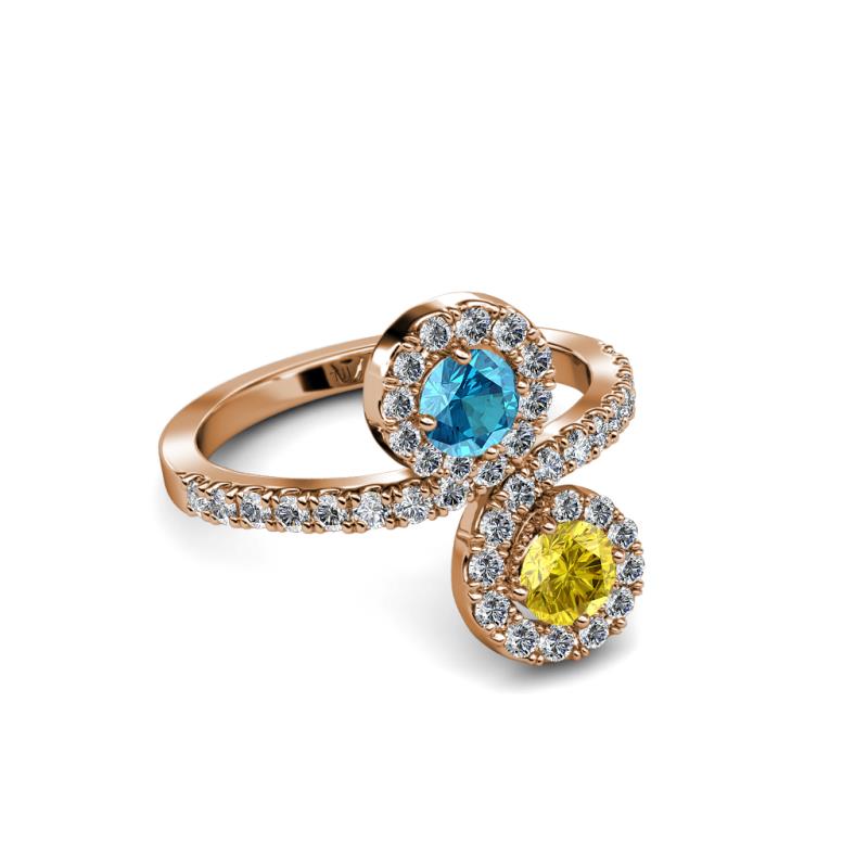 Yellow Sapphire and London Blue Topaz 2 Stone with Side Diamonds Bypass Engagement Ring 1.25 Carat tw in 14K Rose Gold. More Details ...