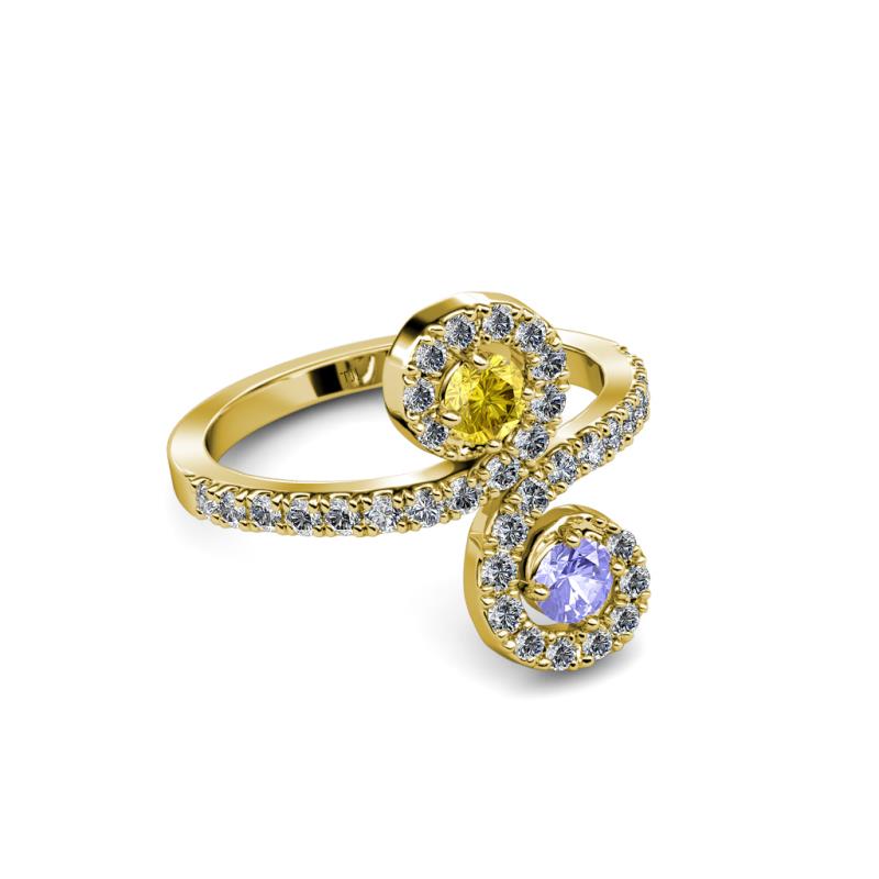 Yellow Sapphire and Tanzanite 2 Stone with Side Diamonds Bypass Engagement Ring 0.74 Carat tw in 14K Yellow Gold. More Details ...