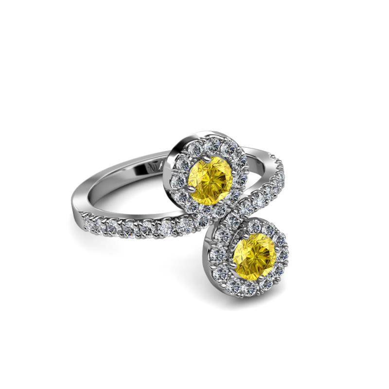 Yellow Sapphire 2 Stone with Side Diamonds Bypass Engagement Ring 1.24 Carat tw in 14K White Gold. More Details ...