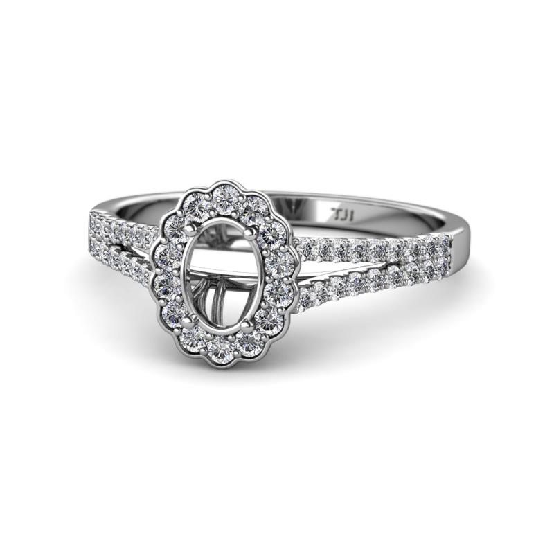 Diamond Semi Mount Womens Split Shank Halo Engagement Ring Setting 0.60 ctw 14K White Gold More Details ...