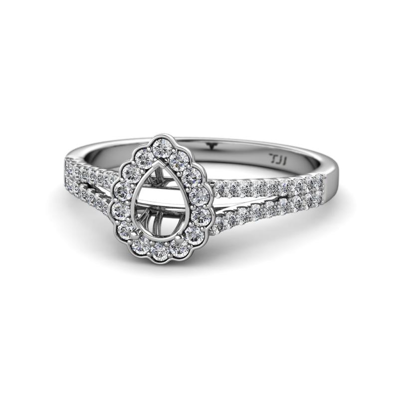A modern twist on a classic Halo style, this Pear Semi Mount Halo Engagement Ring is sure to delight your beloved with its Vintage Style look.
