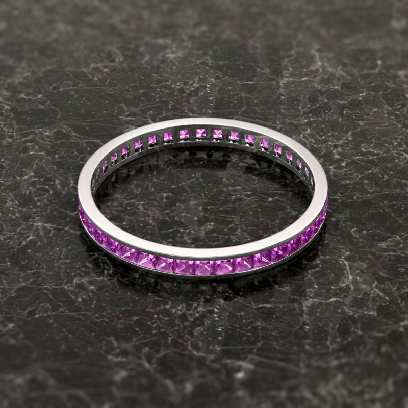 Shining with opulence and femine appeal, this Eternity Band inspires any attire with Glittering Princess Cut Channel Set Amethyst symbolizing the Eternal Circle of Love. *As per ring size the stone and carat total weight changes.