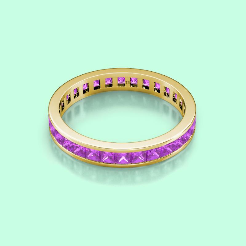 Princess Cut Amethyst 2.97 ctw* Channel Set Womens Eternity Ring Stackable 10K Yellow Gold More Details ...