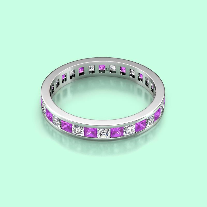 Princess Cut Amethyst and Diamond Channel Set Womens Eternity Ring Stackable 3.25 ctw* 14K White Gold More Details ...