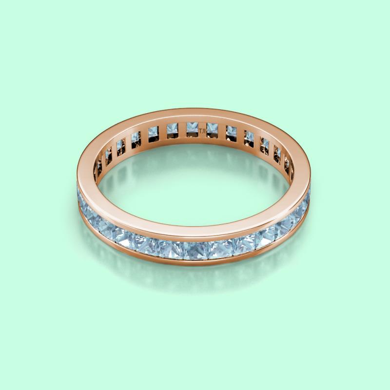 Princess Cut Aquamarine 2.97 ctw* Channel Set Womens Eternity Ring Stackable 18K Rose Gold More Details ...