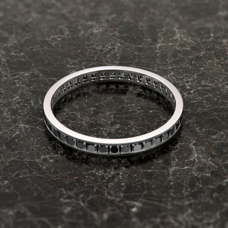 Shining with opulence and femine appeal, this Eternity Band inspires any attire with Glittering Princess Cut Channel Set Black Diamond symbolizing the Eternal Circle of Love. *As per ring size the stone and carat total weight changes.