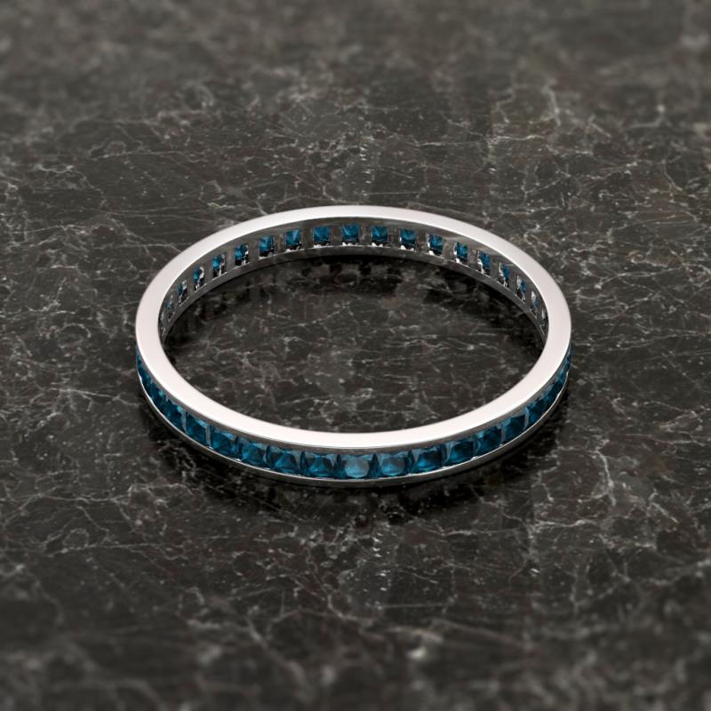 Shining with opulence and femine appeal, this Eternity Band inspires any attire with Glittering Princess Cut Channel Set Blue Diamond symbolizing the Eternal Circle of Love. *As per ring size the stone and carat total weight changes.