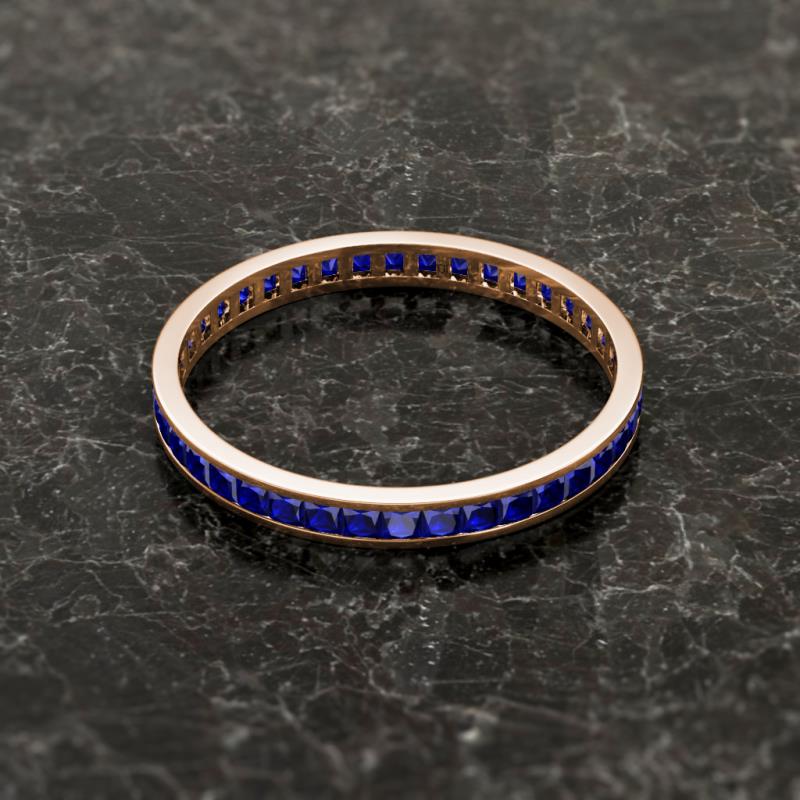 Princess Cut Blue Sapphire 1.71 ctw* Channel Set Womens Eternity Ring Stackable 10K Rose Gold More Details ...
