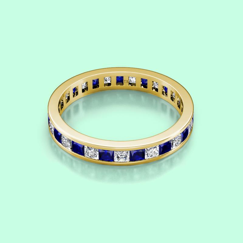 Princess Cut Blue Sapphire and Lab Grown Diamond Channel Set Womens Eternity Ring Stackable 3.14 ctw* 18K Yellow Gold More Details ...