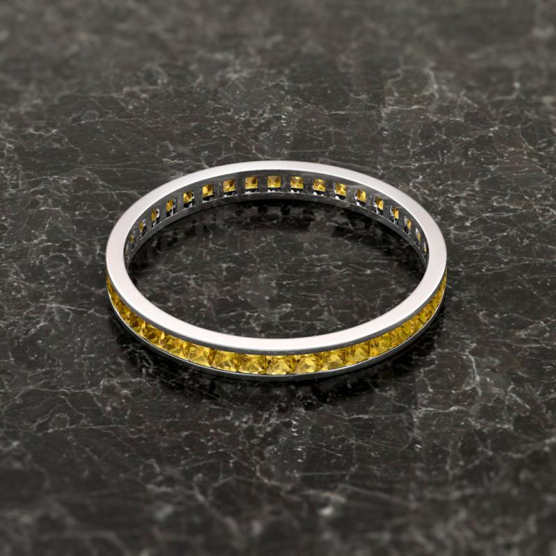 Shining with opulence and femine appeal, this Eternity Band inspires any attire with Glittering Princess Cut Channel Set Citrine symbolizing the Eternal Circle of Love. *As per ring size the stone and carat total weight changes.