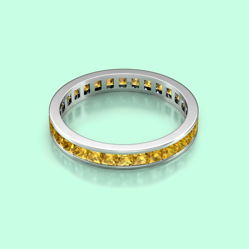 Shining with opulence and femine appeal, this Eternity Band inspires any attire with Glittering Princess Cut Channel Set Citrine symbolizing the Eternal Circle of Love. *As per ring size the stone and carat total weight changes.