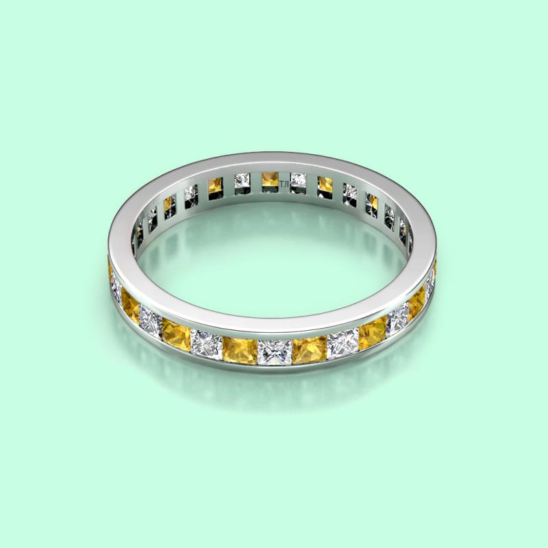 Shining with opulence and femine appeal, this Eternity Band inspires any attire with Glittering Princess Cut Channel Set Citrine and Lab Grown Diamond symbolizing the Eternal Circle of Love. *As per ring size the stone and carat total weight changes.