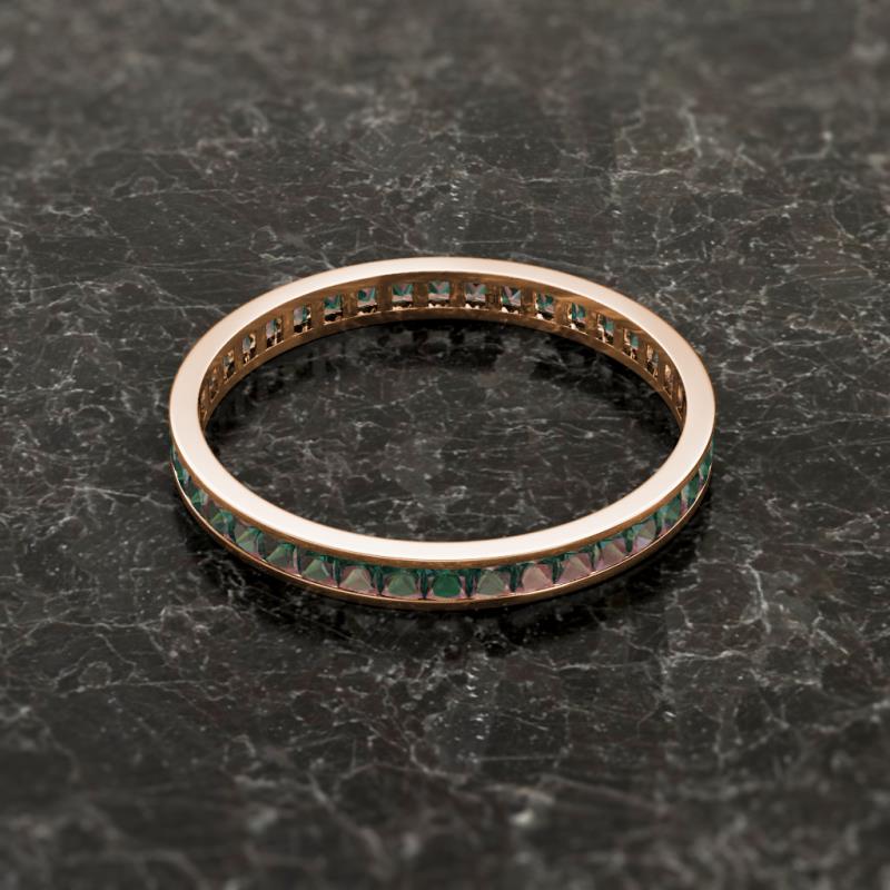 Shining with opulence and femine appeal, this Eternity Band inspires any attire with Glittering Princess Cut Channel Set Created Alexandrite symbolizing the Eternal Circle of Love. *As per ring size the stone and carat total weight changes.