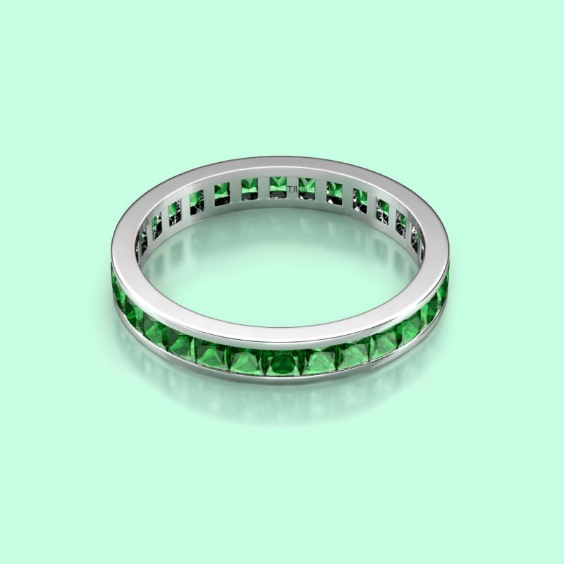 Shining with opulence and femine appeal, this Eternity Band inspires any attire with Glittering Princess Cut Channel Set Green Garnet symbolizing the Eternal Circle of Love. *As per ring size the stone and carat total weight changes.