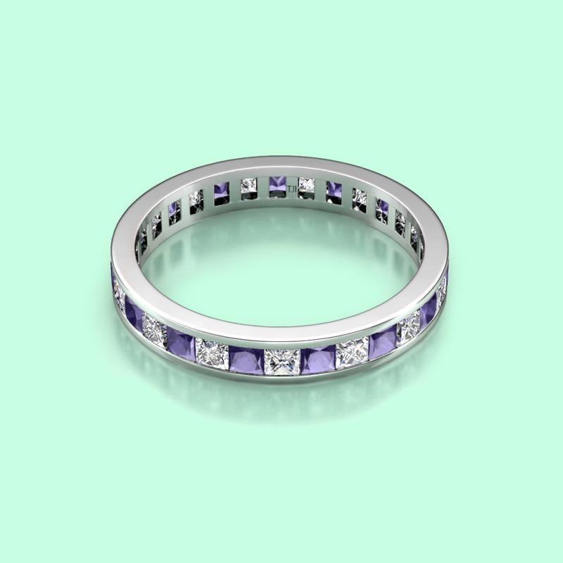 Princess Cut Iolite and Lab Grown Diamond Channel Set Womens Eternity Ring Stackable 3.08 ctw* 10K White Gold More Details ...