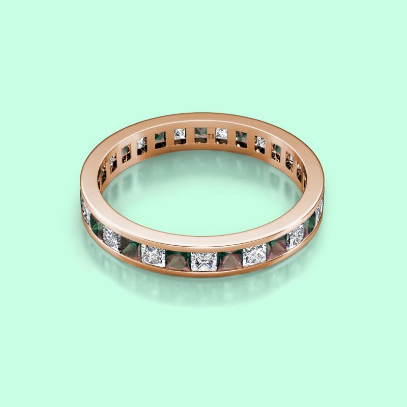 Princess Cut Lab Created Alexandrite and Lab Grown Diamond Channel Set Womens Eternity Ring Stackable 3.14 ctw* 18K Rose Gold More Details ...