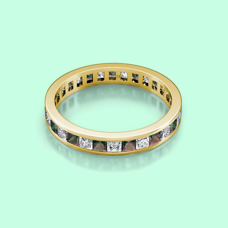 Princess Cut Lab Created Alexandrite and Lab Grown Diamond Channel Set Womens Eternity Ring Stackable 3.14 ctw* 10K Yellow Gold More Details ...