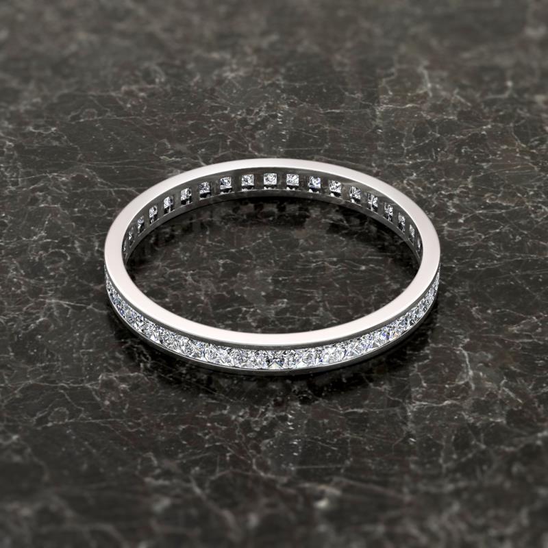 Shining with opulence and femine appeal, this Eternity Band inspires any attire with Glittering Princess Cut Channel Set Lab Grown Diamond symbolizing the Eternal Circle of Love. *As per ring size the stone and carat total weight changes.