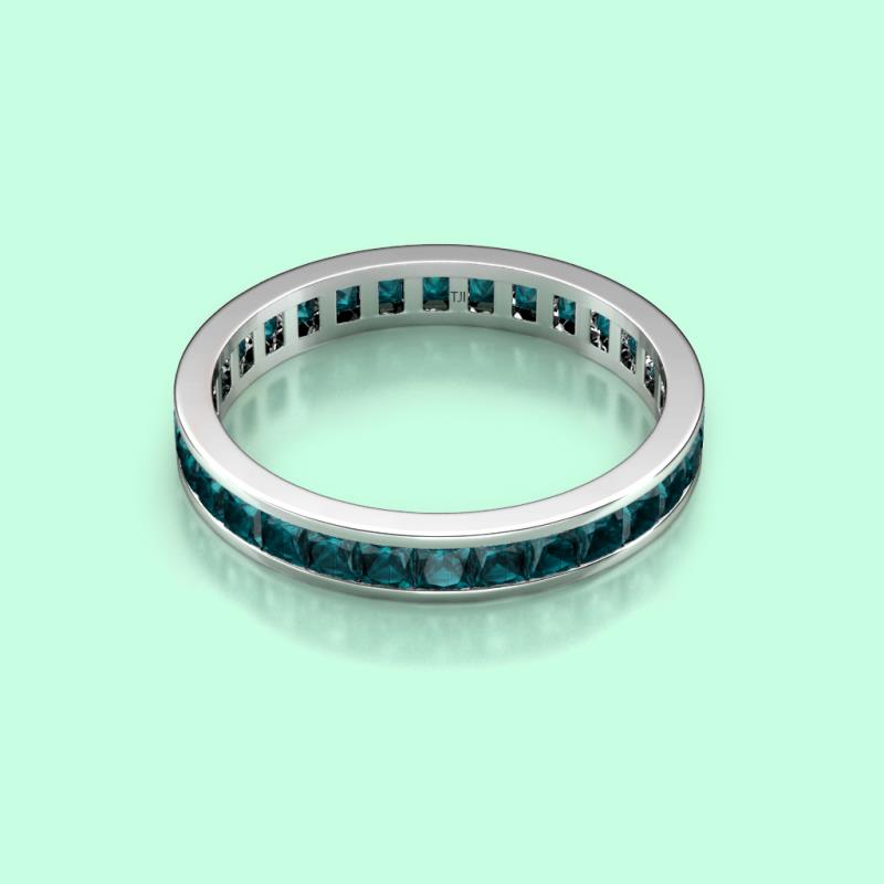 Shining with opulence and femine appeal, this Eternity Band inspires any attire with Glittering Princess Cut Channel Set London Blue Topaz symbolizing the Eternal Circle of Love. *As per ring size the stone and carat total weight changes.