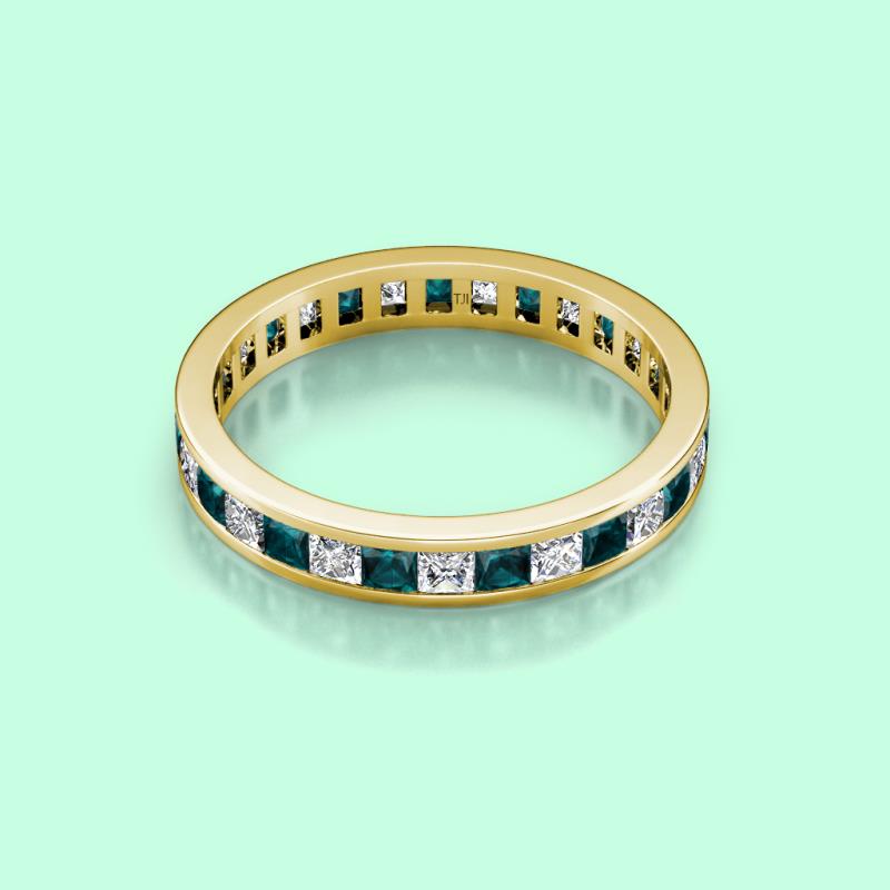 Princess Cut London Blue Topaz and Diamond Channel Set Womens Eternity Ring Stackable 3.19 ctw* 10K Yellow Gold More Details ...