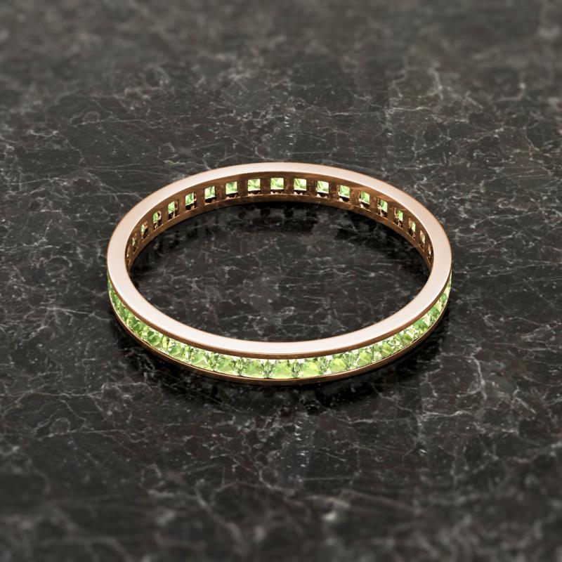 Shining with opulence and femine appeal, this Eternity Band inspires any attire with Glittering Princess Cut Channel Set Peridot symbolizing the Eternal Circle of Love. *As per ring size the stone and carat total weight changes.