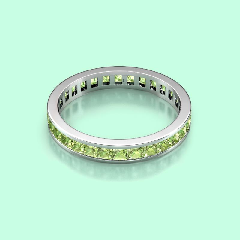 Shining with opulence and femine appeal, this Eternity Band inspires any attire with Glittering Princess Cut Channel Set Peridot symbolizing the Eternal Circle of Love. *As per ring size the stone and carat total weight changes.