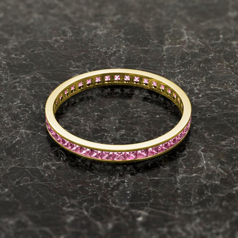 Princess Cut Pink Tourmaline 1.55 ctw* Channel Set Womens Eternity Ring Stackable 14K Yellow Gold More Details ...
