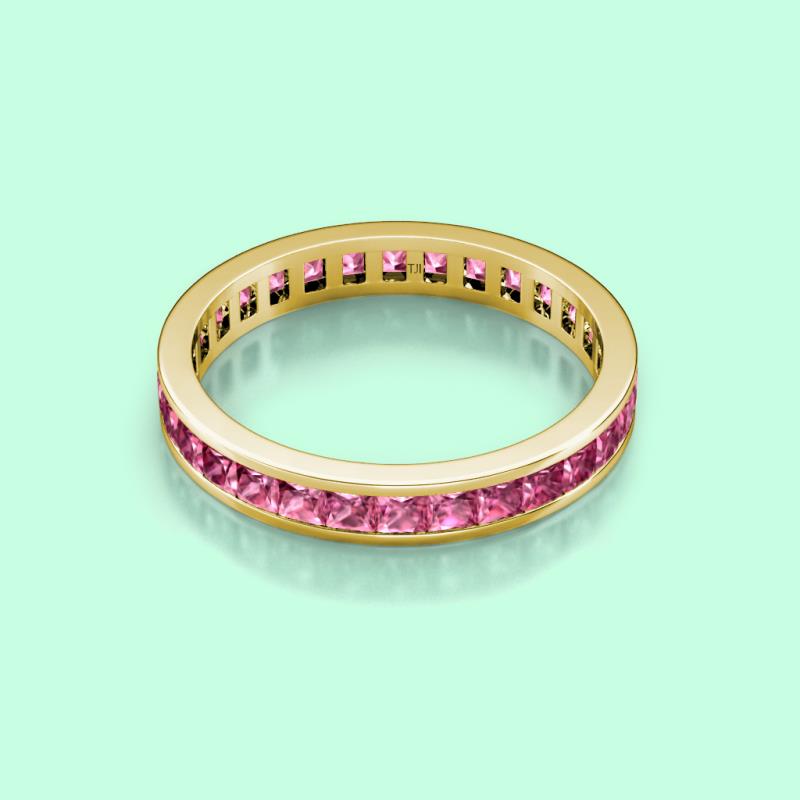 Princess Cut Pink Tourmaline 2.86 ctw* Channel Set Womens Eternity Ring Stackable 18K Yellow Gold More Details ...