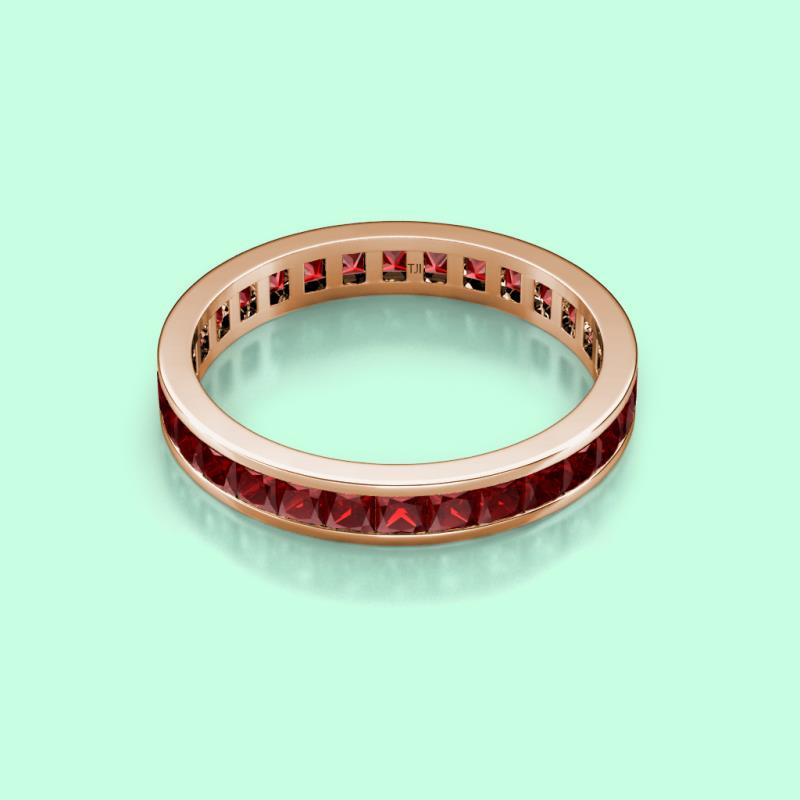 Princess Cut Red Garnet 3.30 ctw* Channel Set Womens Eternity Ring Stackable 14K Rose Gold More Details ...