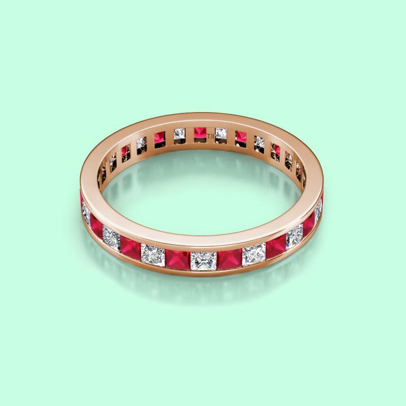 Princess Cut Ruby and Lab Grown Diamond Channel Set Womens Eternity Ring Stackable 3.14 ctw* 10K Rose Gold More Details ...