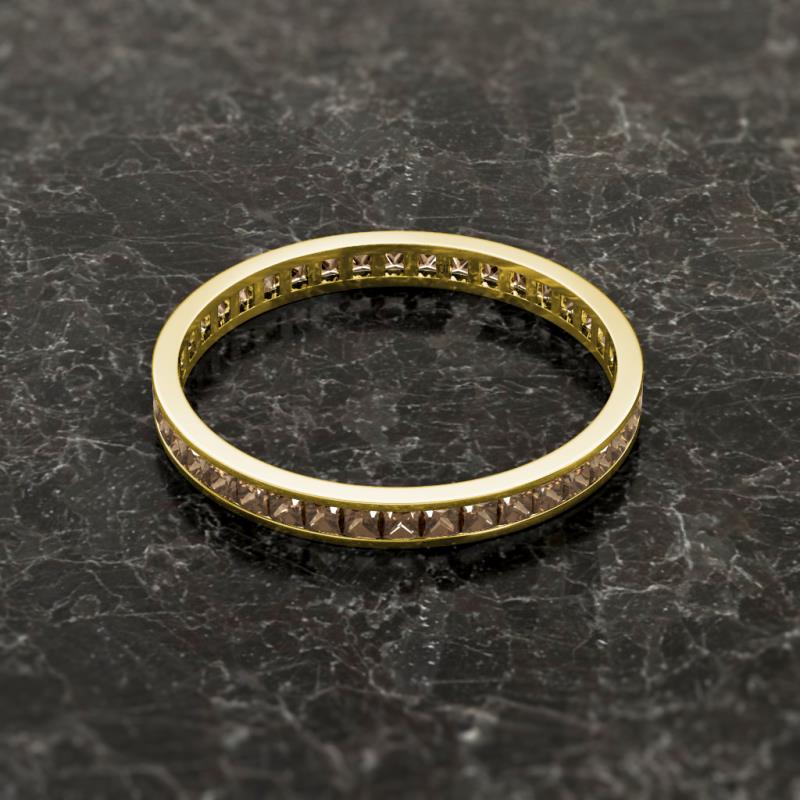 Shining with opulence and femine appeal, this Eternity Band inspires any attire with Glittering Princess Cut Channel Set Smoky Quartz symbolizing the Eternal Circle of Love. *As per ring size the stone and carat total weight changes.