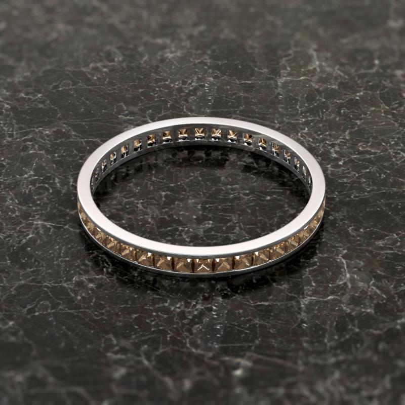 Shining with opulence and femine appeal, this Eternity Band inspires any attire with Glittering Princess Cut Channel Set Smoky Quartz symbolizing the Eternal Circle of Love. *As per ring size the stone and carat total weight changes.