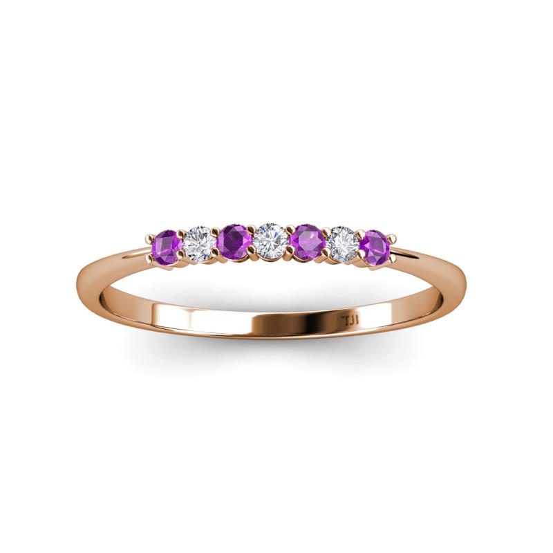 Amethyst and Diamond 7 Stone Womens Wedding Band Stackable 1/5 ctw 14K Rose Gold More Details ...