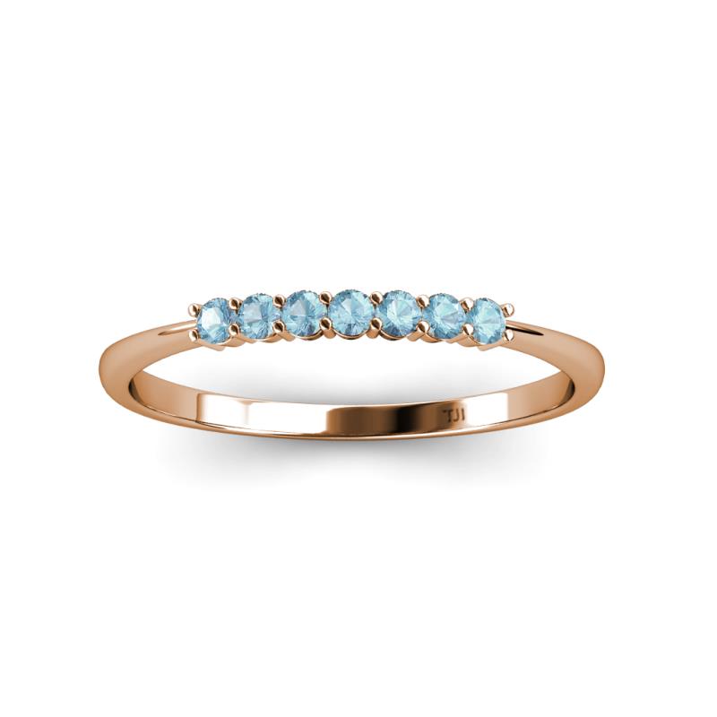 Aquamarine 7 Stone Womens Wedding Band Stackable 1/6 ctw 18K Rose Gold More Details ...