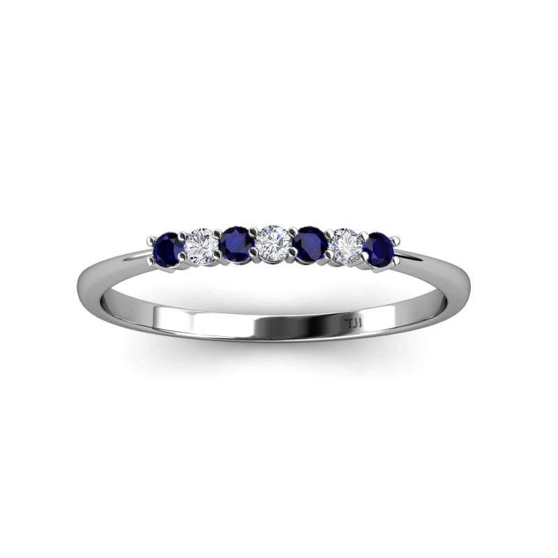Blue Sapphire and Lab Grown Diamond 7 Stone Womens Wedding Band Stackable 0.22 ctw 18K White Gold More Details ...