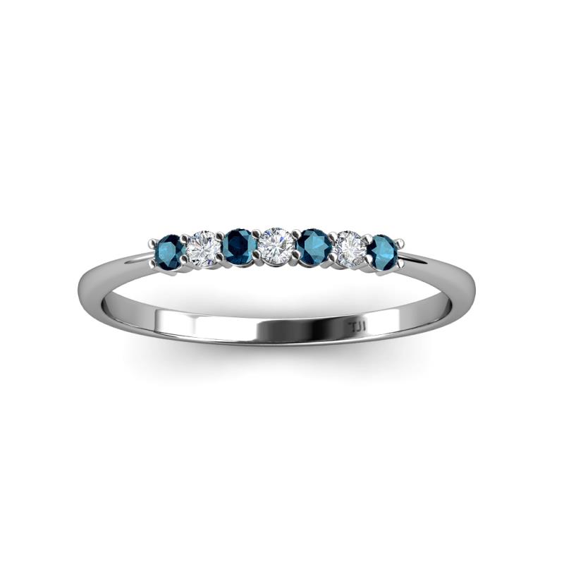 Blue and White Diamond 7 Stone Womens Wedding Band Stackable 1/4 ctw 14K White Gold More Details ...