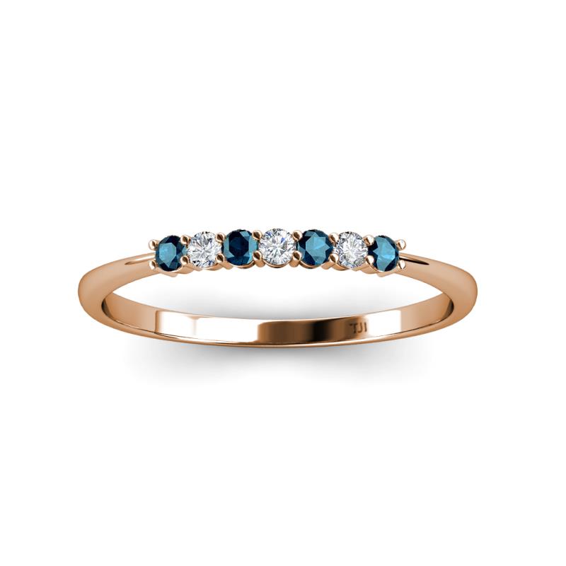 Blue and White Diamond 7 Stone Womens Wedding Band Stackable 1/4 ctw 14K Rose Gold More Details ...