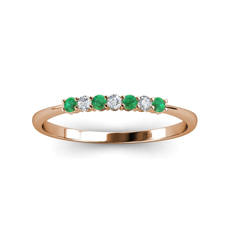 Emerald and Diamond 7 Stone Womens Wedding Band Stackable 1/5 ctw 18K Rose Gold More Details ...