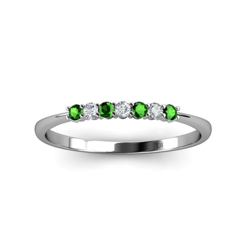 Green Garnet and Diamond 7 Stone Womens Wedding Band Stackable 1/4 ctw 10K White Gold More Details ...