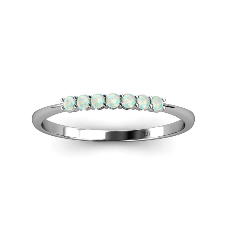 Opal 7 Stone Womens Wedding Band Stackable 1/5 ctw 14K White Gold More Details ...