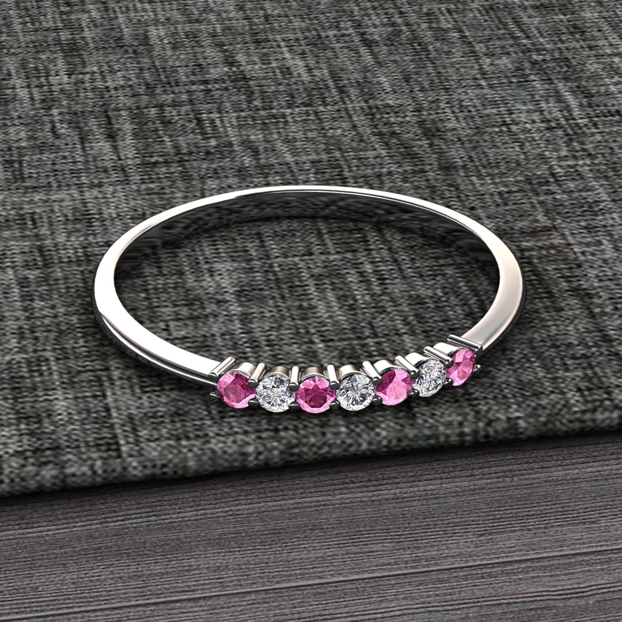 Pink Sapphire and Diamond 7 Stone Womens Wedding Band Stackable 1/4 ctw 14K White Gold More Details ...