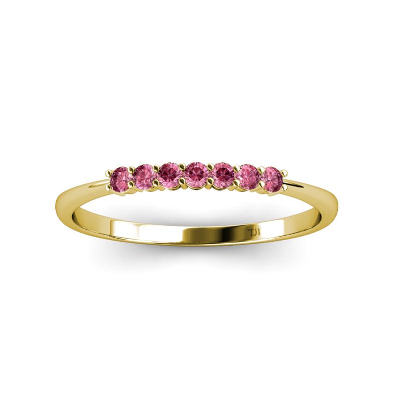 Pink Tourmaline 7 Stone Womens Wedding Band Stackable 1/6 ctw 10K Yellow Gold More Details ...