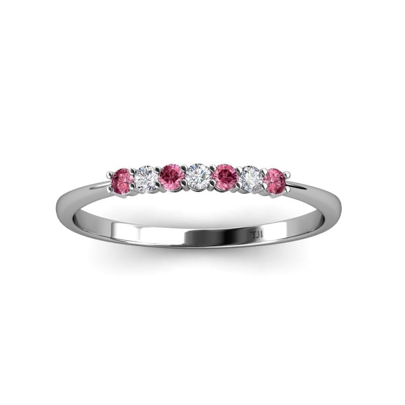 Pink Tourmaline and Diamond 7 Stone Womens Wedding Band Stackable 1/5 ctw Sterling Silver More Details ...