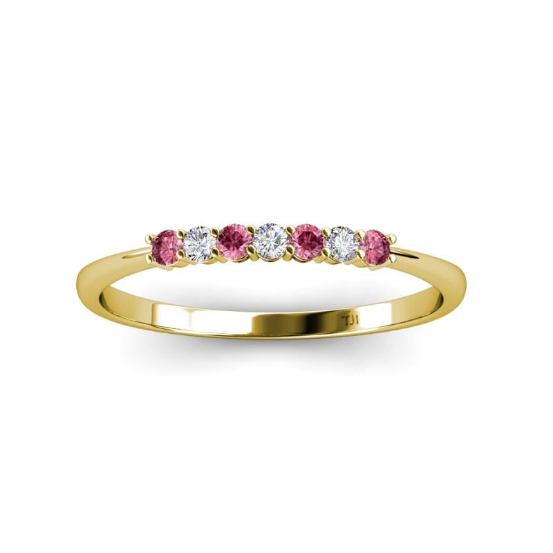 Pink Tourmaline and Lab Grown Diamond 7 Stone Womens Wedding Band Stackable 0.18 ctw 10K Yellow Gold More Details ...
