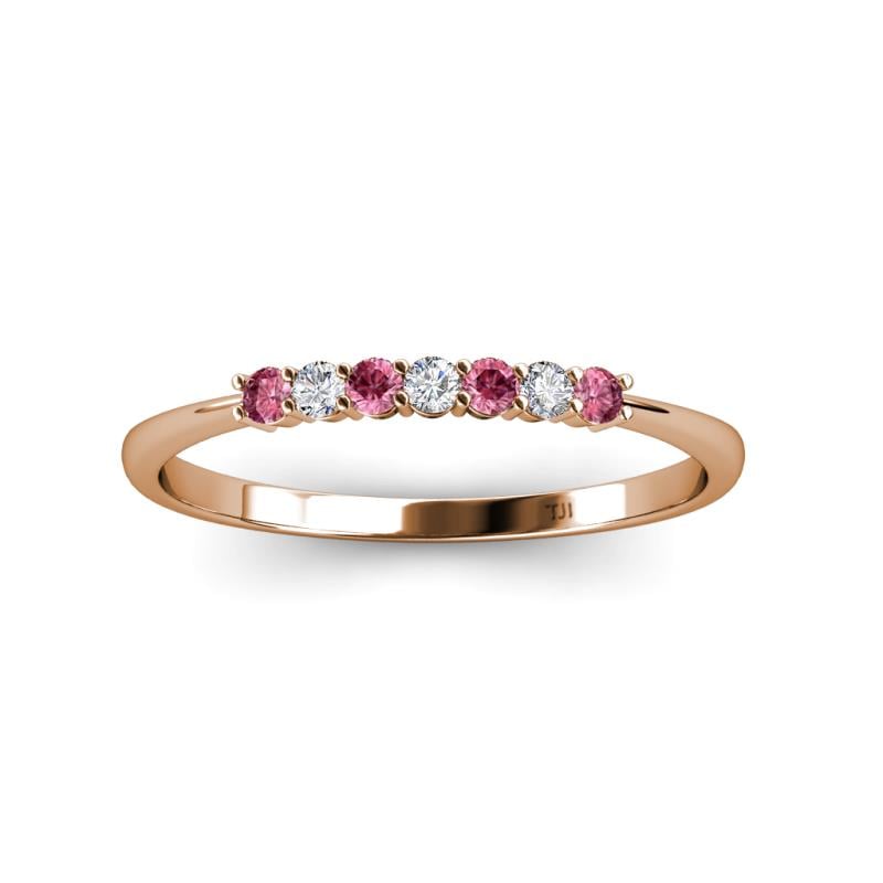 Pink Tourmaline and Lab Grown Diamond 7 Stone Womens Wedding Band Stackable 0.18 ctw 10K Rose Gold More Details ...