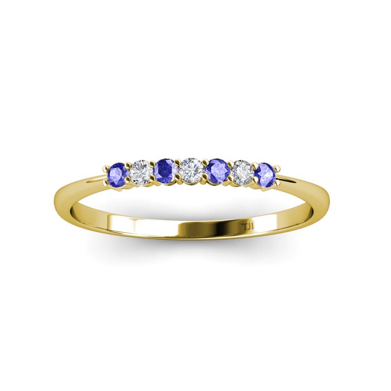 Tanzanite and Diamond 7 Stone Womens Wedding Band Stackable 1/5 ctw 18K Yellow Gold More Details ...