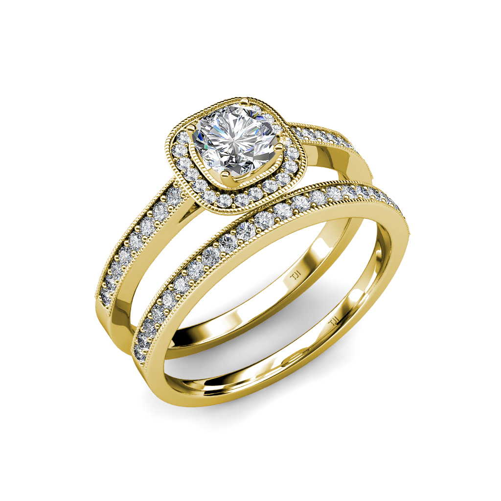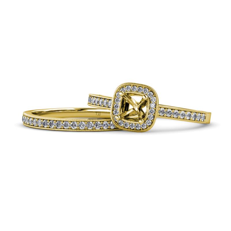 Diamond Semi Mount Halo Ring Setting & Matching Diamond Band with Milgrain Work 0.55 ctw 14K Yellow Gold More Details ...