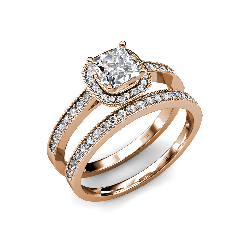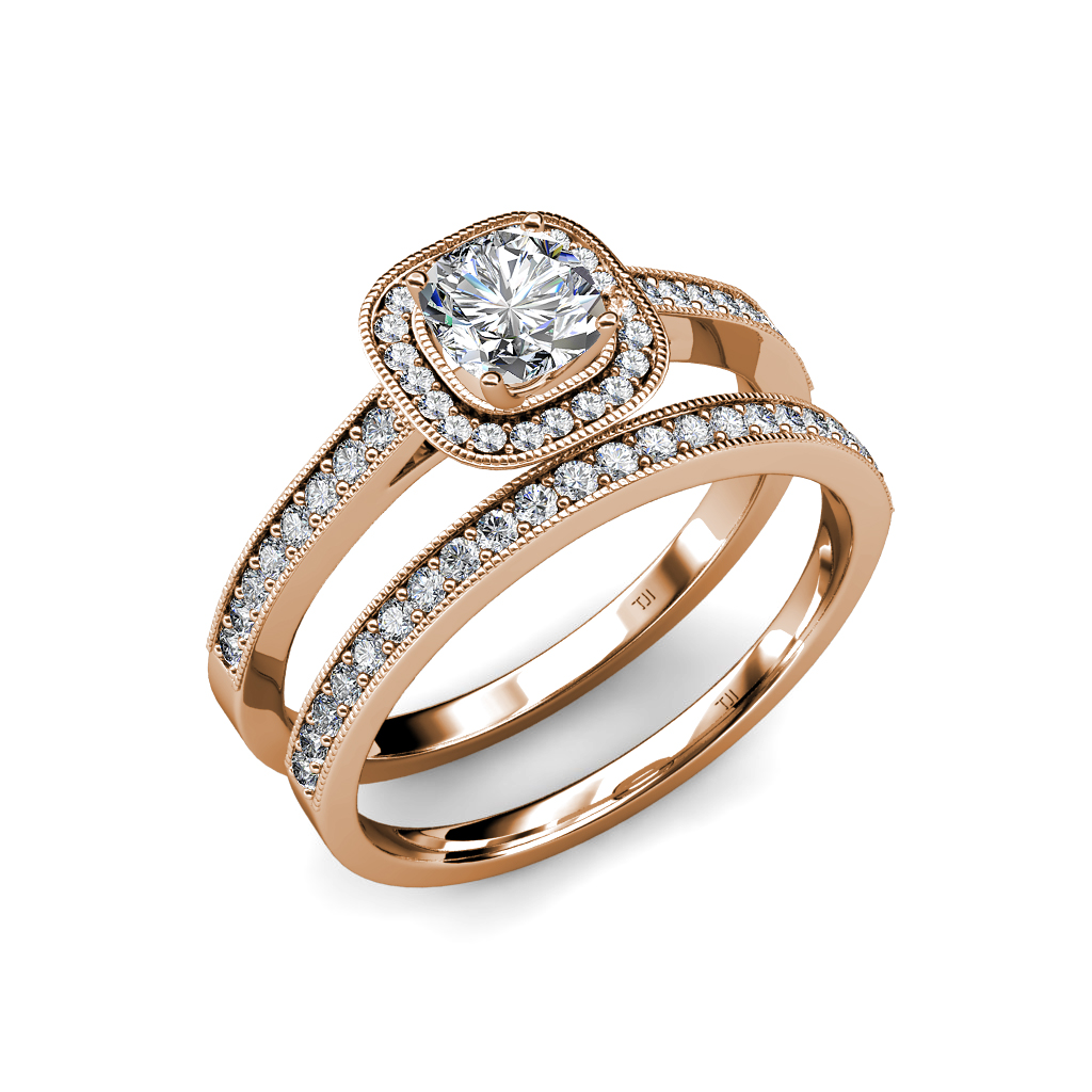 Diamond Semi Mount Halo Ring Setting & Matching Diamond Band with Milgrain Work 0.55 ctw 14K Rose Gold More Details ...