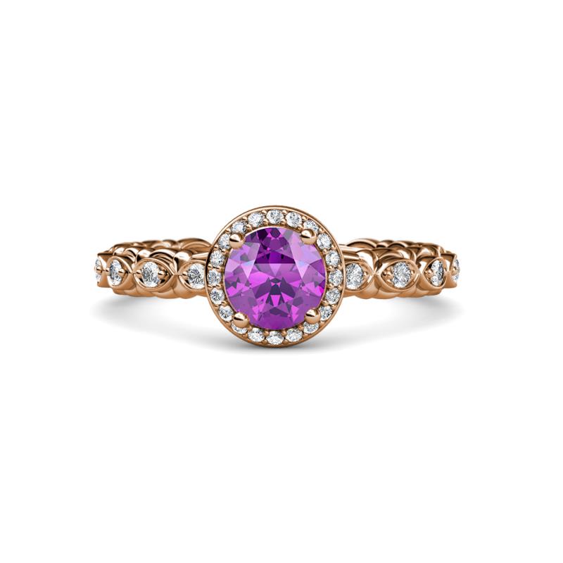 1 1/8 ct Round Amethyst and Diamond Cascading Scalloped Shank Womens Halo Engagement Ring 14K Rose Gold More Details ...
